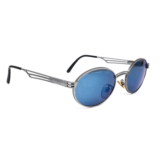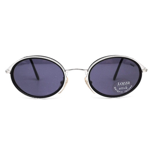 Lozza 1162 silver/black oval sunglasses in minimalistic design, 1970's NOS Italy