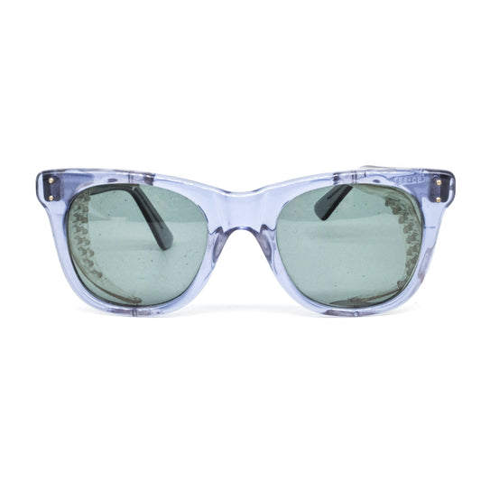 Baruffaldi translucent acetate wayfarer sunglasses with transparent side panels, new old stock 80s ITA