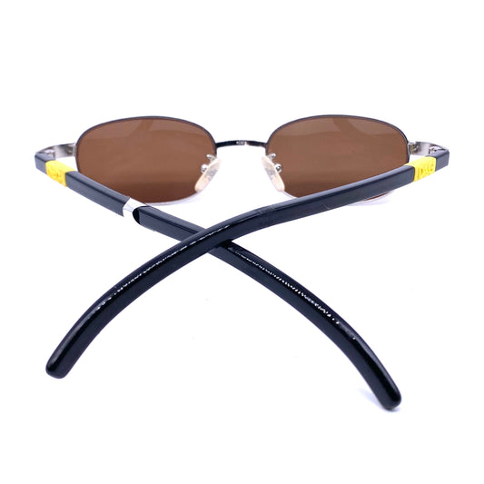 D&G minimalist rectangular metal sunglasses with black temples & neon yellow logo, NOS 90s Italy