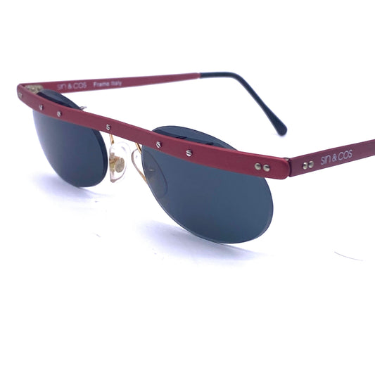 Sin&Cos red metal avant-garde oval steampunk sunglasses with flat browline, NOS 90s