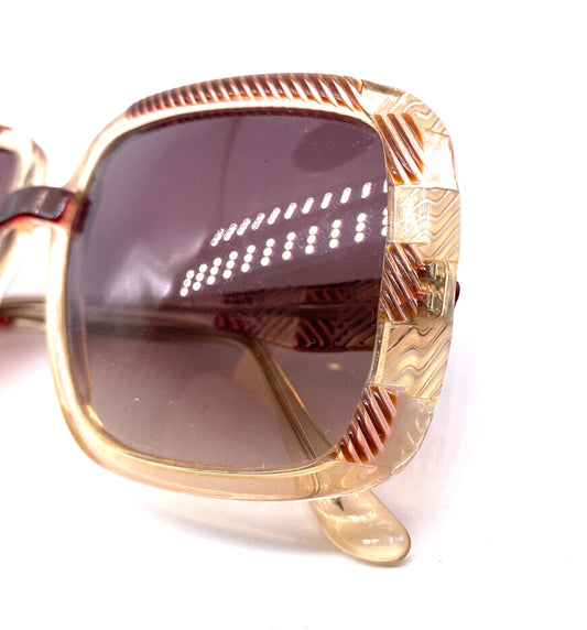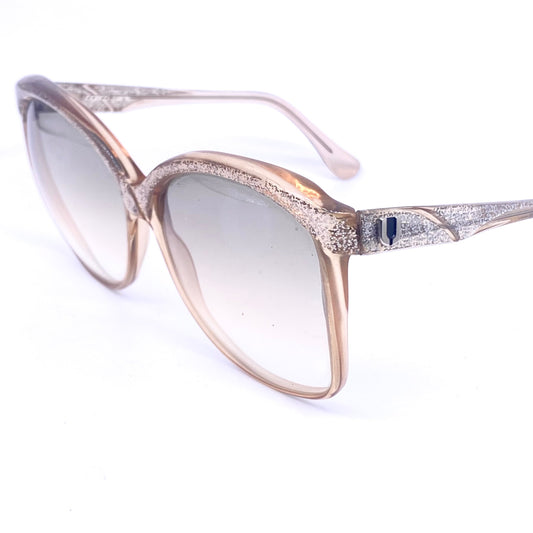 Ungaro oversized sunglasses, catchy silver glitter details over translucent sand color base, 80s Italy NOS
