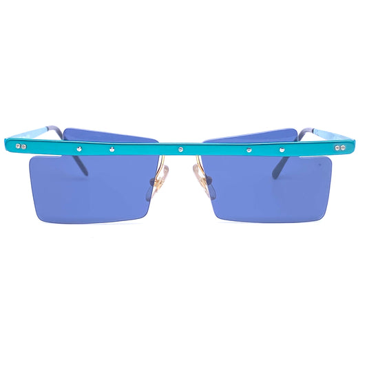 Sin&Cos glam rock edgy anodized metal avant garde sunglasses, blue, green or red, NOS 90s Italy