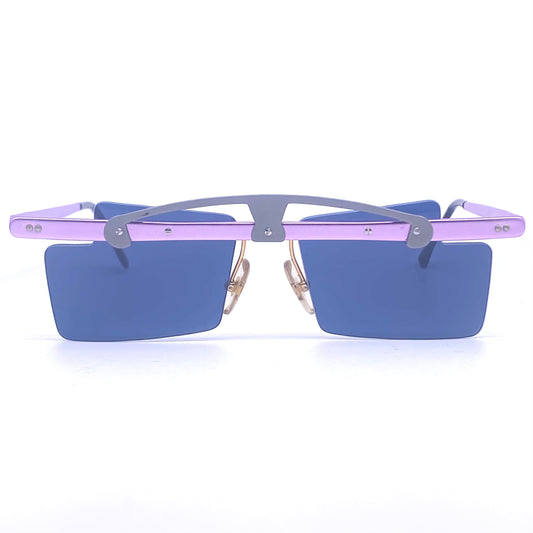 Sin&Cos square lilac metal sunglasses with silver Arch bridge, eye catching avant garde design, NOS 90s