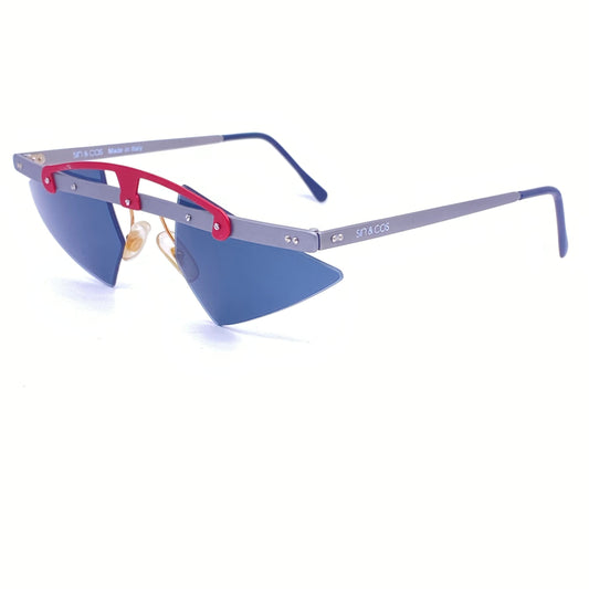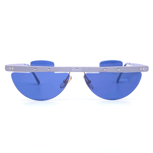 Sin&Cos semi circle anodized metal steampunk sunglasses, blue, silver or red, NOS 90s Italy