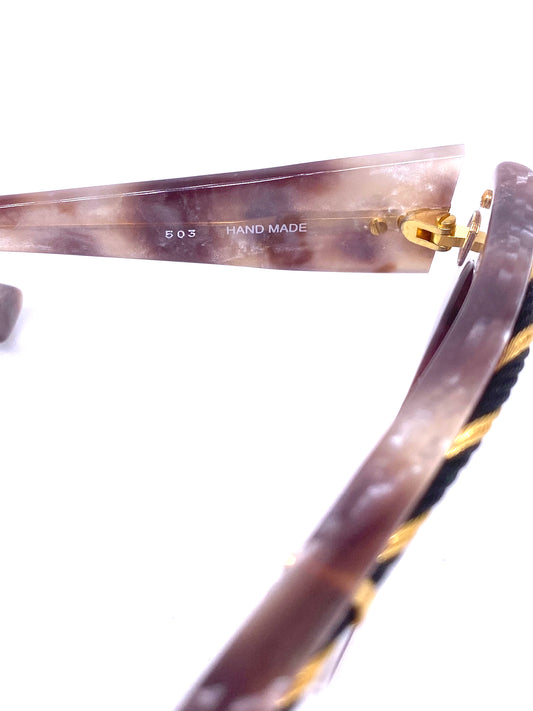 Maruska luxury marbled cello flat top sunglasses w rope detailed flat top browline, NOS 80s
