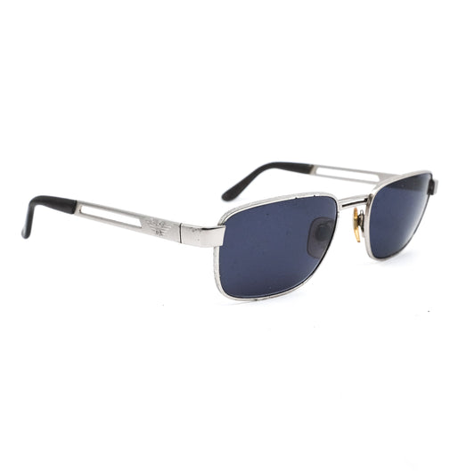 Emporio Armani silver metallic square sunglasses, retro styled with cut off temples carved with armani eagles, 1980s NOS Italy