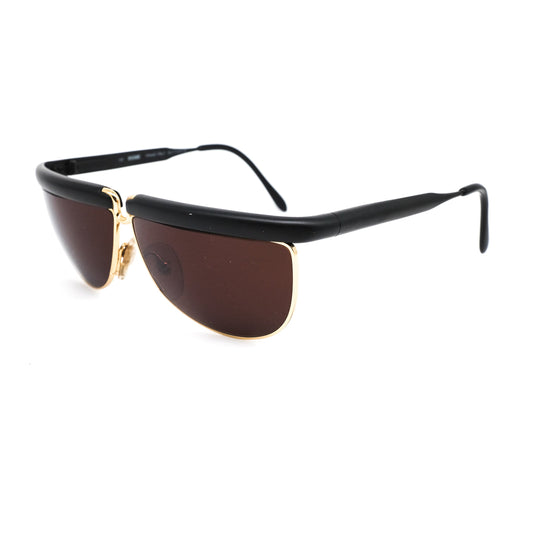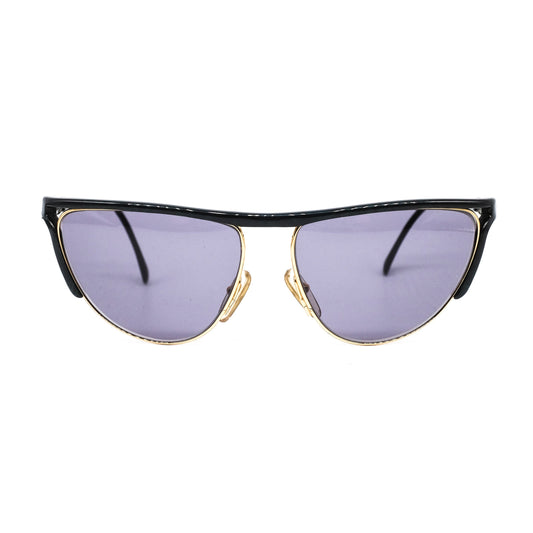 Gianfranco Ferré GFF51 cateye sunglasses with golden metal rim and black acetate browline and temples. Made in Italy, 1980s nos