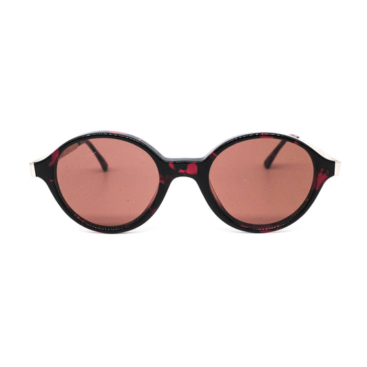 Red Rose RR51 cello round sunglasses with black-red camo rim and golden carved metallic temples, 80s nos Italy