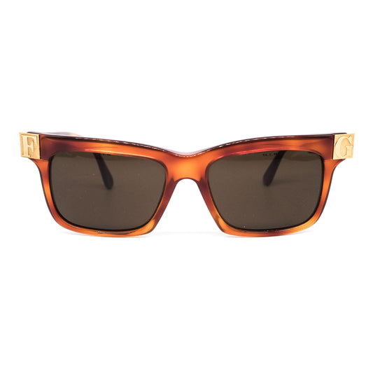 Gianfranco Ferré gff48s square brown tortoise sunglasses with huge branding details hand made in Italy, 1980s nos