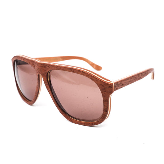 Jean Lempereur woodline aviator style sunglasses in natural brown real wood and brown lenses, NOS 1980s Made in Germany