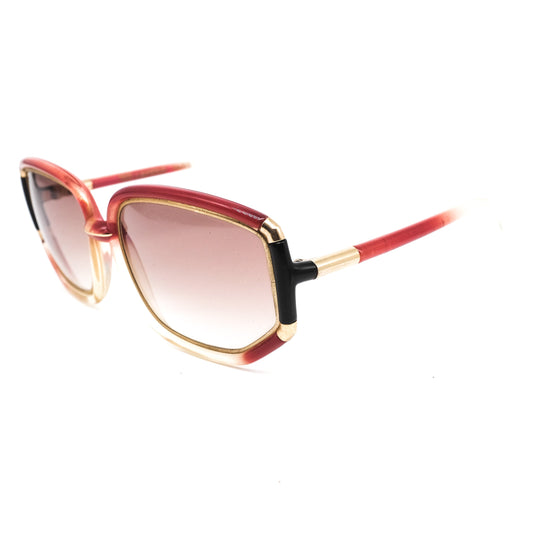Ted Lapidus Paris red thick cellulose acetate square sunglasses with brown degrade lenses, 1970s NOS France.