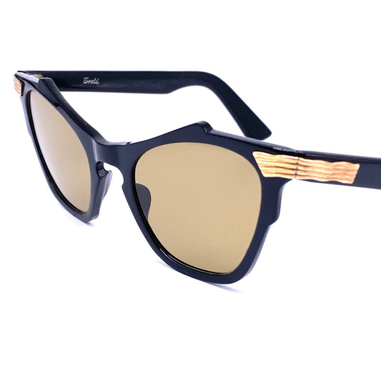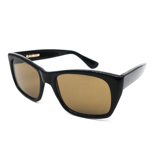 Nilsol Italy square modernist black acetate sunglasses with brown lenses, 1980s NOS