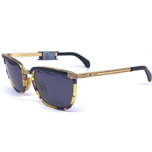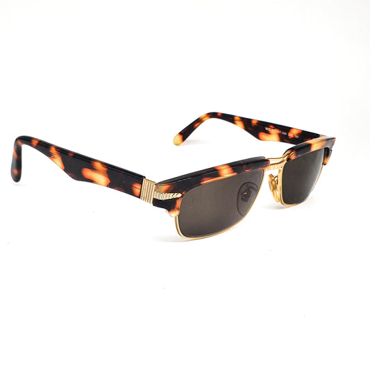 Police 1131 square brown tortoise cello sunglasses with golden metallic parts, 1980s NOS Italy