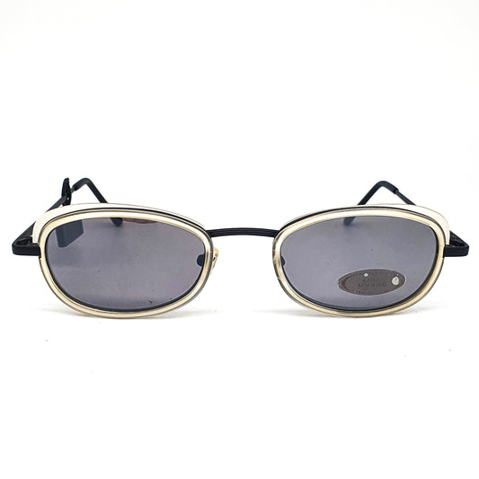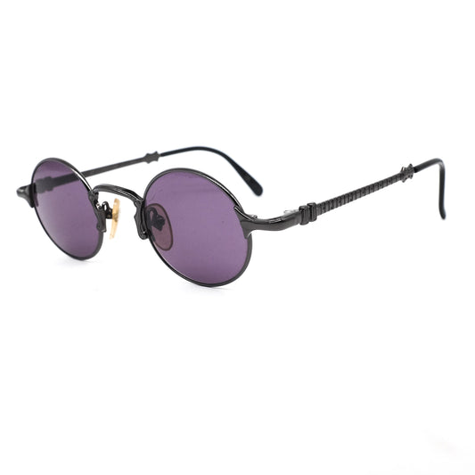 Junior Gaultier 57-4175 vintage Victorian steampunk style round sunglasses in glossy black metal, mint condition Made in Japan