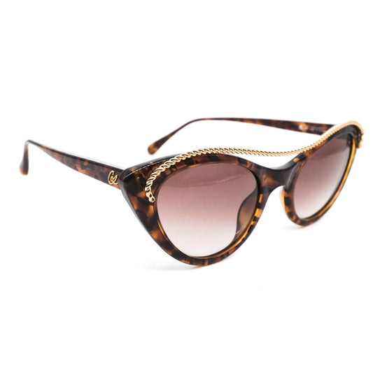 Christian Lacroix 7368 vintage brown tortoise acetate cateye sunglasses with shiny gold cable inspired browline, 80s nos Germany