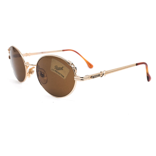 Moschino Persol MM464 round satin gold sunglasses made in Italy, NOS 1980s