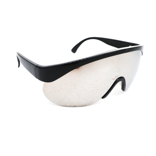 Gianni Versace black futuristic wrap sunglasses with brown mirrored shield lenses, NOs 90s Italy