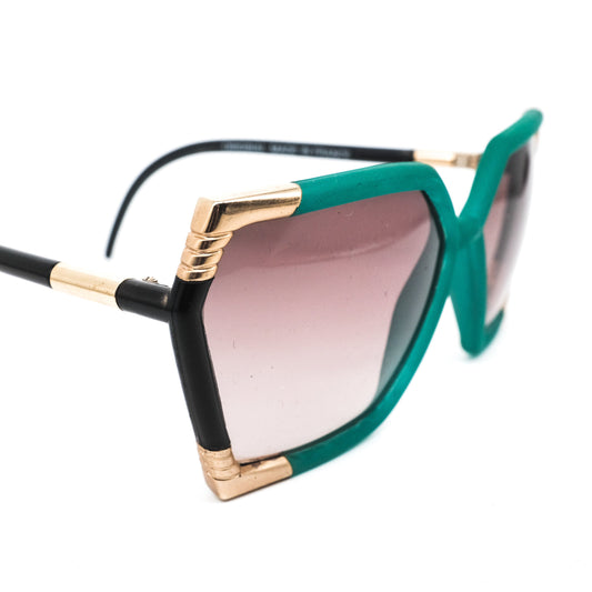 Ted Lapidus Paris tiffany blue or pink and black thick cellulose acetate square sunglasses with golden metal details, 1970s NOS France.