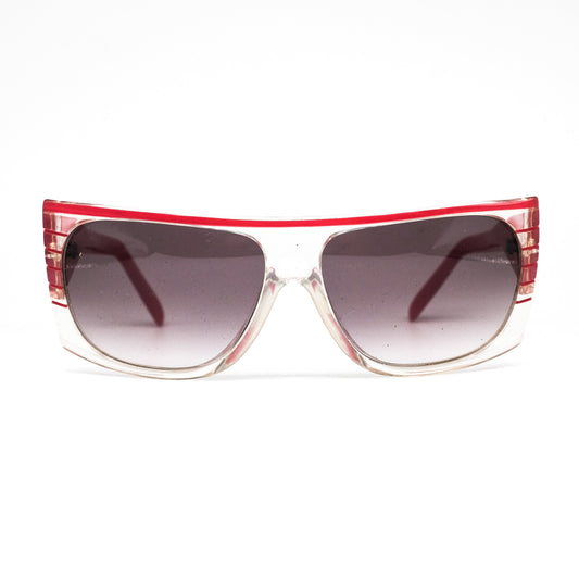 Martin's Lunette vintage square black degrade lenses sunglasses in clear acetate with red accent 80s NOS