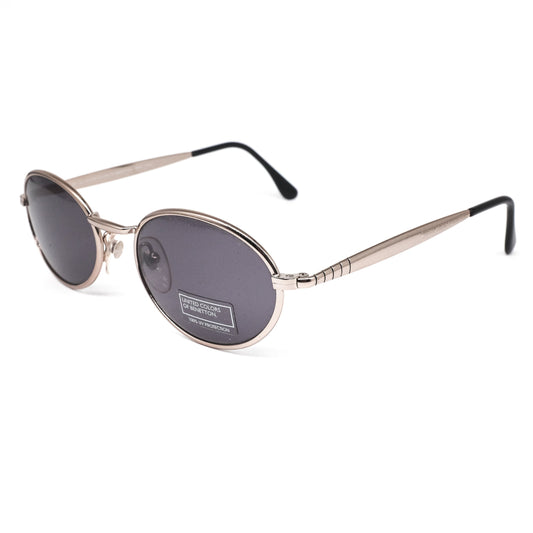 United Colors of Benetton rare oval sunglasses in silver colour and a minimal finishing, 1980's NOS Italy