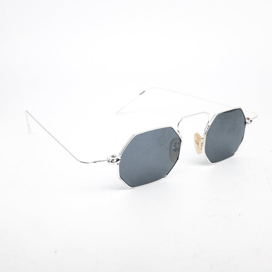 Arroganza sunglasses with hexagonal ultra small lenses in black and ultra slim silver metallic builld NOS made in italy