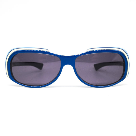 Funky vintage blue square sunglasses with multicolored stripe rim handmade in Germany 80s NOS