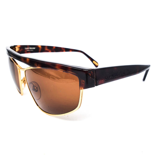 Gianni Versace 740 medusa cello tortoise flat browline sunglasses with biker style lenses in brown Made in Italy, NOS 1990s