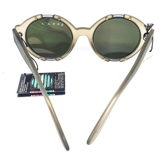 Les Copains steampunk round frost green cello sunglasses, 1980s NOS Italy