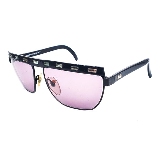 Paloma Picasso 3706 vintage black thick browline square sunglasses with carved gemstone details, NOS 1990s Austria