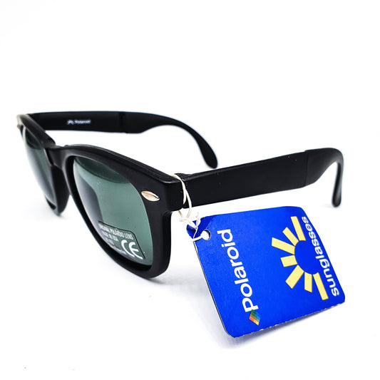 Polaroid 8243A vintage classic foldable black cellulose acetate wayfarer sunglasses, 1990s NOS. Framed in Italy