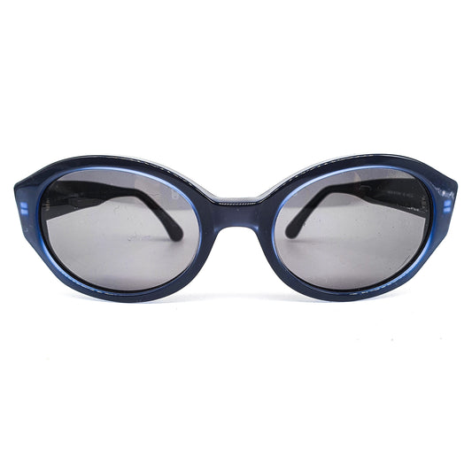 Calvin Klein 619S round oval deep blue cellulose acetate sunglasses with classic rivets details NOS 90s Italy