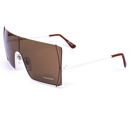 Krizia modernist brown/white metal framed shield wrapping sunglasses with vertical line on the nose bridge area, 1980s NOS made in Italy