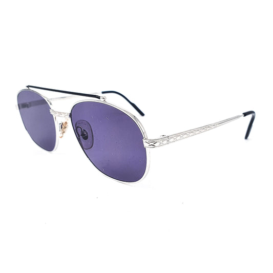 Vintage silver aviator sunglasses with flat mirrored lenses, carved deco details, Gambini 80s NOS