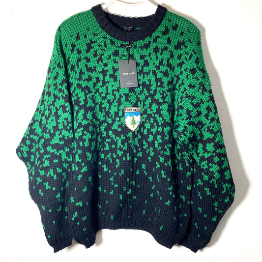 Post Card NWT 90s black/green degrade knitted pure new wool sweater, made in Italy mint