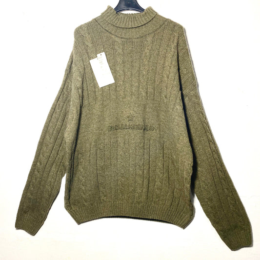 Rodchenko design cable knit turtleneck jumper, military style green knitted sweater, NOs 80s with tags