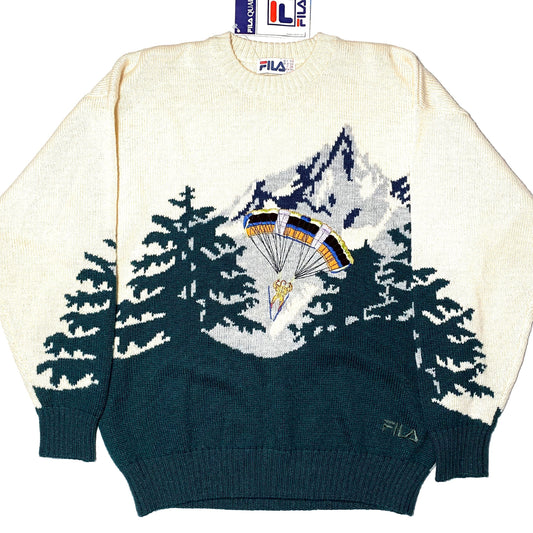 Fila NWT mountain themed embroidered / knitted sweater made in Italy, 90s new with tags