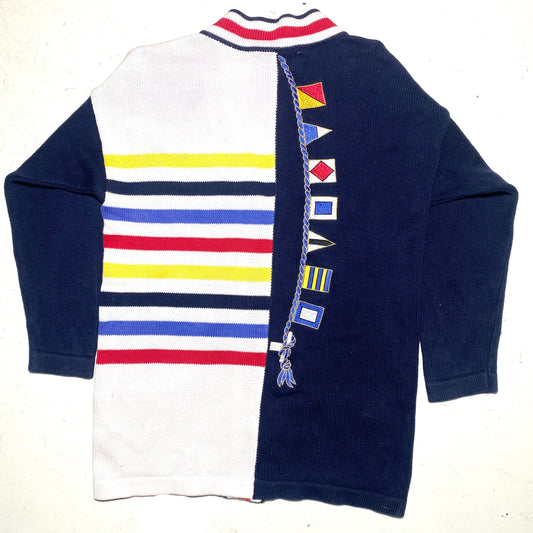 J C De Castelbajac cotton cardigan, yachting style with sailing flags and knots, good condition