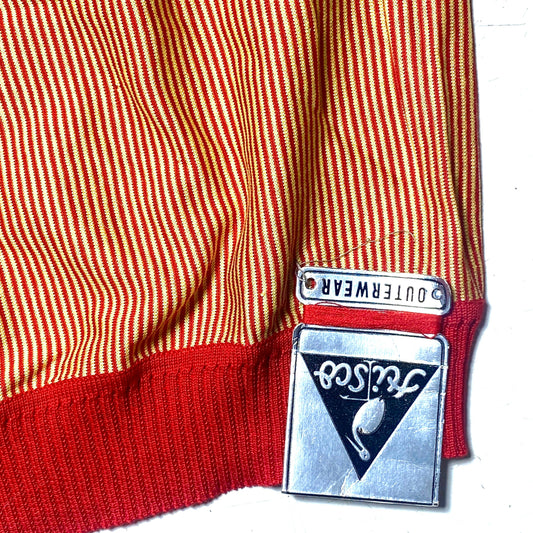 Hisco 70s NOS striped red/mustard sweater, mercerised Lisle cotton yarn knit made in Italy, new with tags