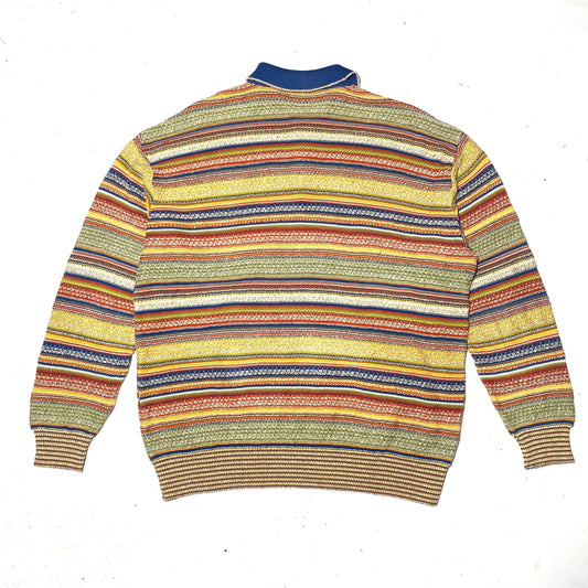 Hugo Boss colorful striped missoni/coogi style oversized collared cotton sweater, great condition 90s