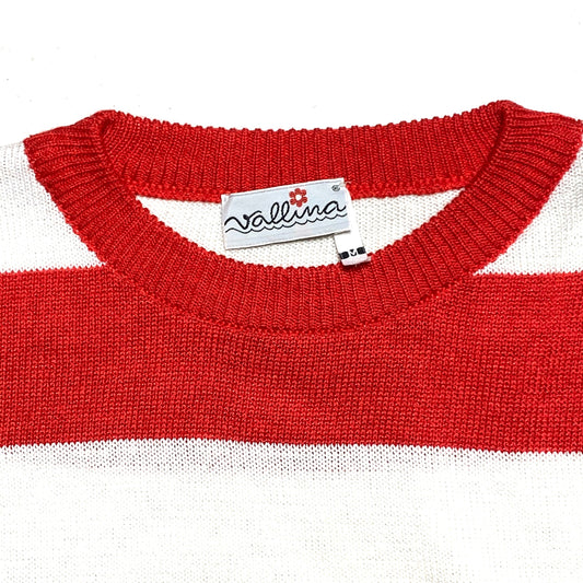 Vallina red/white horizontal striped cotton pullover, classic mariner vibe crewneck sweater, Italy 80s mint