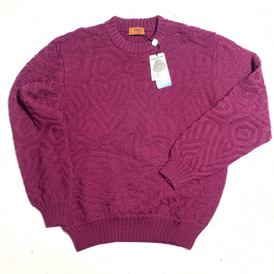 Missoni sport 80s NOS vintage burgundy pure new Wool sweater With 3d abstract motif allover sz 50 M