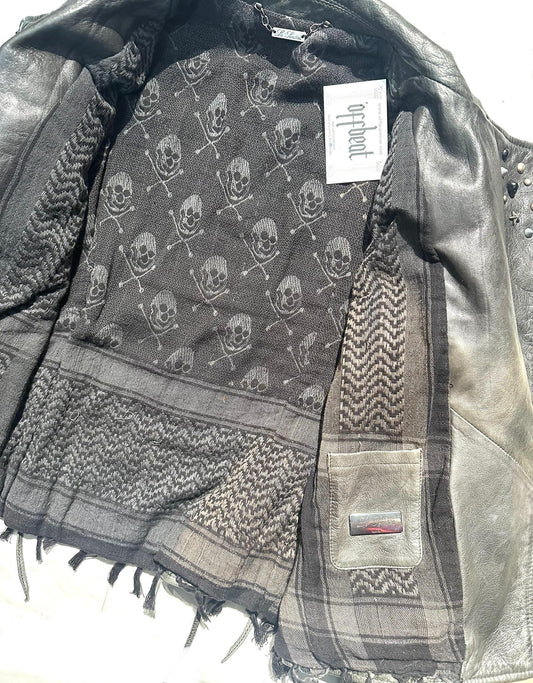 Le Sentier luxury dark grey studded chiodo-vest with kefiah lining, mint sz M 42