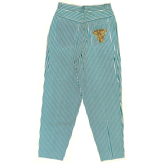 Mania preppy white/green striped trousers w elephant embroidered, sz 28/ 42 ita NOS 80s Italy
