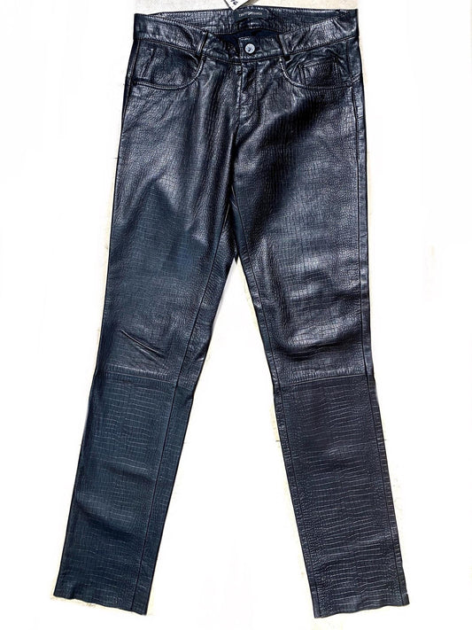 Trussardi luxury black alligator print lambskin leather trousers made in Italy, sz 42 ITA - 28 US