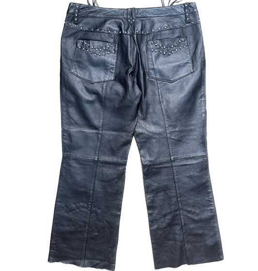 Rocking Black real leather trousers w/ Svarowsky studs, made in Italy 90s sz 33