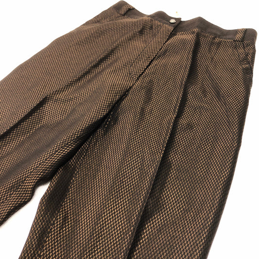 Gianni Versace classy sartorial trousers in brown checkered jacquard viscose, zippered ankles, NOS 80s W Tags