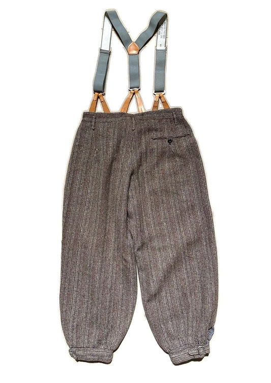 Auth. 1930s circa sartorial brown chevron thick wool trousers ready made 4 suspenders, great cond. sz S man