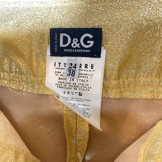 D&G 90s gold shiny ladies trousers with slit to the knees Size 38