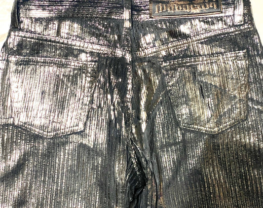 Mahrajah silver painted black corduroy velvet trousers available in sz 31, 33, new old stock 90s mint condition