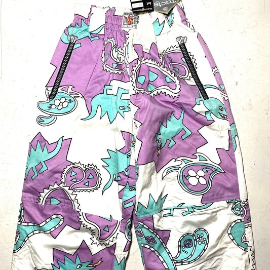 Jet Set purple / turquoise / white dragons / paisley crazy print windsurf padded tactel trousers, NOS 90s